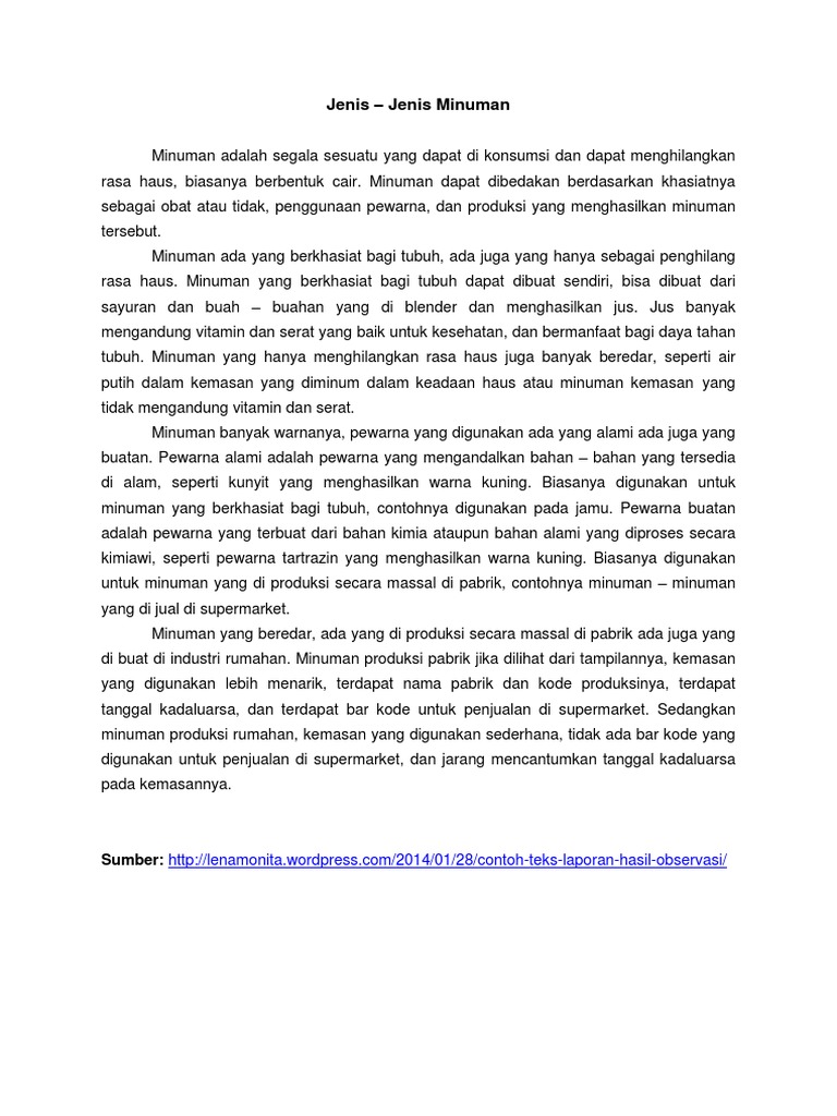 CONTOH TEKS LAPORAN HASIL OBSERVASI SINGKAT BESERTA from www.academia.edu