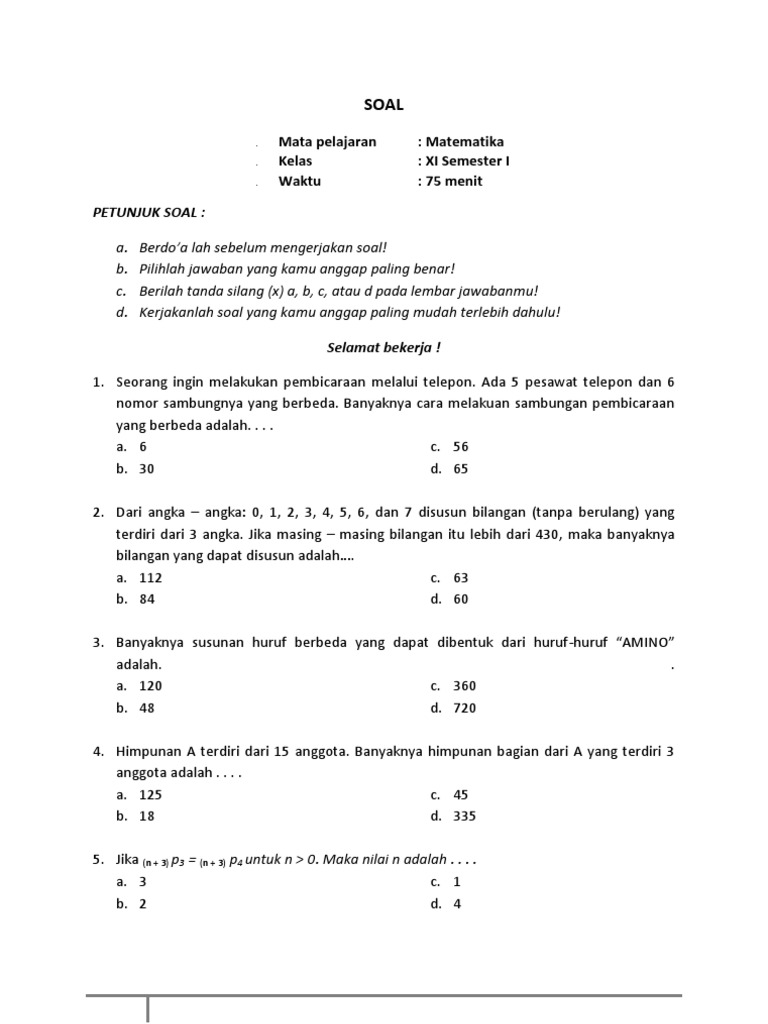 Pilihan Ganda (Multiple Choice) Satu Soal Terdiri Atas Beberapa Kemungkinan Jawaban,.