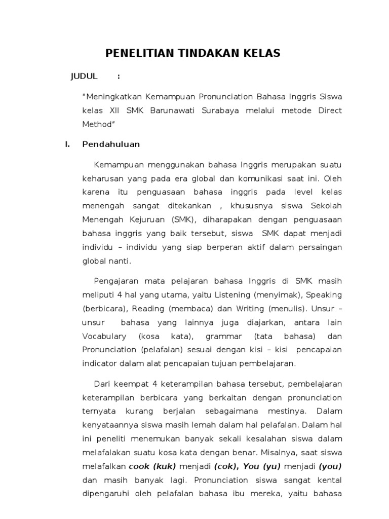 Contoh proposal ptk meningkatkan kemampuan pronunciation bahasa inggris melalui metode direct method contoh proposal ptk sma kelas xii meningkatkan kemampuan pronunciation bahasa inggris melalui metode direct method.; Berikut adalah contoh judul penelitian tindakan kelas ptk bahasa indonesia sebagai acuan. Ptk sma bahasa inggris (penggunaan metode student team achievement division (stad) untuk meningkatkan penguasaan simple present tense pada. Bagi anda yang menginginkan file ptk smp mata pelajaran bahasa indonesia lengkap dalam bentuk ms word siap edit dari cover sampai daftar pustaka untuk bahan referensi penyusunan laporan ptk dapat menghubungi kami di: Meningkatkan kemampuan pronunciation bahasa inggris siswa kelas xii sma negeri 3 bireuen melalui metode direct method 1. Download free aplikasi cara menghitung kkm kurikulum 2013. Terlebih apabila rekan sekalian sedang melakukan sebuah penelitian terkait mata pelajaran satu ini contoh. Pengajaran mata pelajaran bahasa inggris di sma negeri 3 bireuen masih meliputi 4 hal yang utama, yaitu listening (menyimak), speaking. Situs resmi sma negeri 78 jakarta.