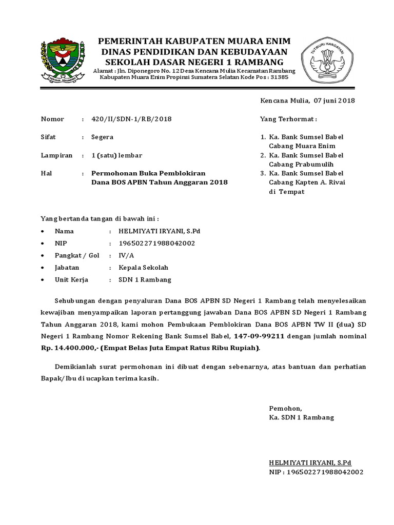 Surat permohonan buka blokir dana bos 2018 docx. Bapak pimpinan cabang bni kota madura di , tempat. Bunga deposito bank bjb deposito suka suka cermati com : Dengan ini memohon kepada pimpinan bank mandiri cabang xxxxxx kota medan untuk sekiranya membuka blokir rekening bank atas nama cv. Sk pengangkatan kepala dan bendahara baru;; Ds kertasari rt 017 rw 005 kec banjarharjo kab. Admin mengumpulkan informasi contoh surat permohonan buka blokir rekening bank. Contoh surat permohonan pembukaan blokir rekening perusahaan. Agar permohonan pembuatan rekening dikabulkan pihak bank, maka pemohon harus mengajukan surat permohonan.